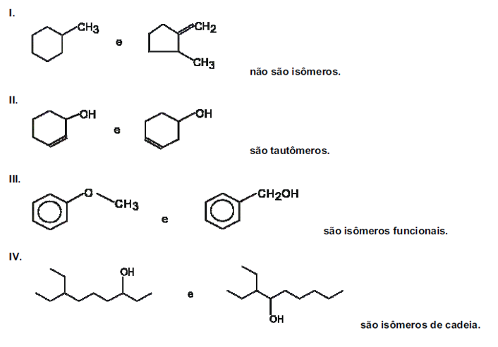 - e) As fórmulas moleculares de I e II são iguais, portanto representam a mesma substância.