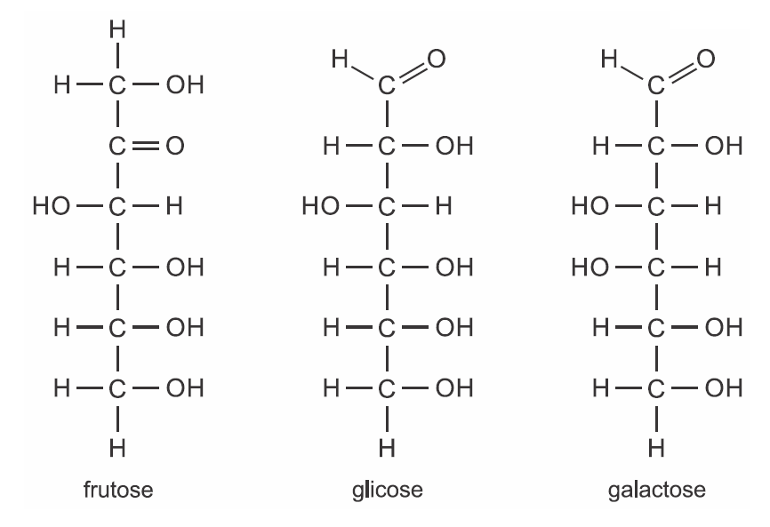 D (UPF 2018) A seguir, estão representadas, por meio da projeção de Fischer, a glicose, a frutose e a galactose.