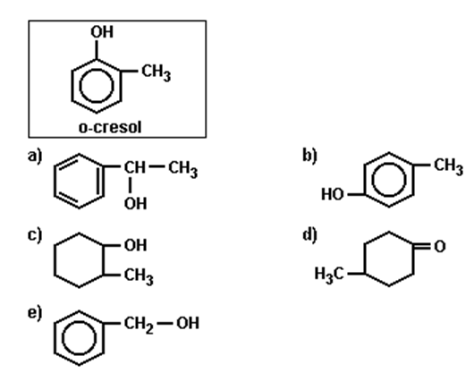 B (UNESP 2018) Examine as estruturas do ortocresol e do álcool benzílico.