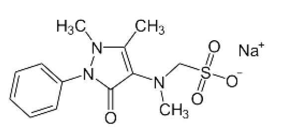 B (PUC PR 2018) Um dos medicamentos mais utilizados no Brasil para dores e febre, a dipirona monossódica é proibida de ser comercializada nos Estados Unidos e Europa. Sua proibição está relacionada ao fato de que o uso constante dessa substância pode levar a granulocitopenia que é a acentuada redução de determinados glóbulos brancos. A estrutura molecular da dipirona monossódica é apresentada a seguir.