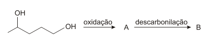 Os produtos obtidos na oxidação do alceno representado, em solução aquosa de KMnO4 são: