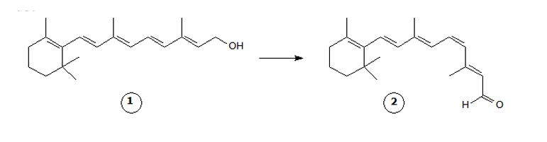 Na transformação do retinol (estrutura 1) em 2, ocorrem reações