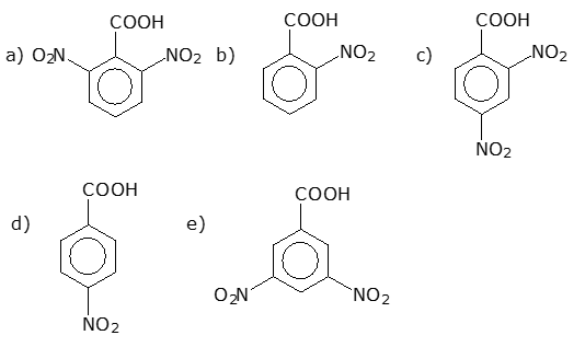 E (CSA 3 – 2012 – BIA – S19) (UFPB) Na reação de um mol de ácido benzóico com dois mols de ácido nítrico, na presença de ácido sulfúrico, forma-se