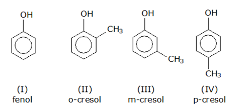 E (CSA 3 – 2012 – BIA – S26) (UFF) Os fenóis são compostos orgânicos oxigenados. Muitos são utilizados como desinfetantes para uso doméstico e alguns são os principais constituintes do carvão mineral. Indica-se, a seguir, as estruturas de componentes do carvão mineral, alguns dos quais estão presentes no desinfetante conhecido por “creolina”.