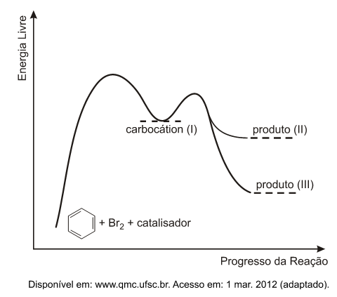 A (ENEM 2012)  O benzeno é um hidrocarboneto aromático presente no petróleo, no carvão e em condensados de gás natural. Seus metabólitos são altamente tóxicos e se depositam na medula óssea e nos tecidos gordurosos. O limite de exposição pode causar anemia, câncer (leucemia) e distúrbios do comportamento. Em termos de reatividade química, quando um eletrófilo se liga ao benzeno, ocorre a formação de um intermediário, o carbocátion. Por fim, ocorre a adição ou substituição eletrofílica.
