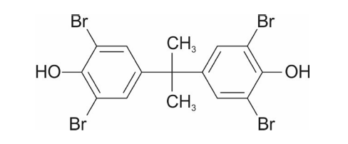 A estrutura do tetrabromobisfenol A, um exemplo de bifenilpolibromado, está representada a seguir.