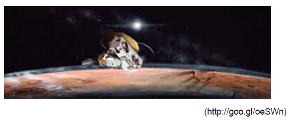 B (FGV SP 2017) A nave “New Horizons”, cuja foto é apresentada a seguir, partiu do Cabo Canaveral em janeiro de 2006 e chegou bem perto de Plutão em julho de 2015. Foram mais de 9 anos no espaço, voando a 21 km/s. É uma velocidade muito alta para nossos padrões aqui na Terra, mas muito baixa se comparada aos 300 000 km/s da velocidade da luz no vácuo.