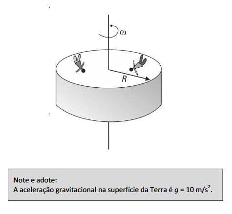 B (FUVEST 2014) Uma estação espacial foi projetada com formato cilíndrico, de raio R igual a 100 m, como ilustra a figura abaixo.