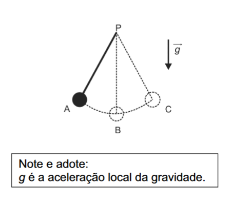 B (FUVEST 2013) O pêndulo de um relógio é constituído por uma haste rígida com um disco de metal preso em uma de suas extremidades. O disco oscila entre as posições A e C, enquanto a outra extremidade da haste permanece imóvel no ponto P. A figura ao lado ilustra o sistema. A força resultante que atua no disco quando ele passa por B, com a haste na direção vertical, é