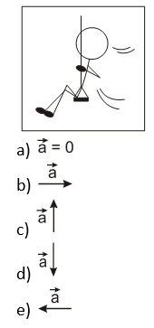 C (UFF 2012) Uma criança se balança em um balanço, como representado esquematicamente na figura a seguir. Assinale a alternativa que melhor representa a aceleração a da criança no instante em que ela passa pelo ponto mais baixo de sua trajetória.