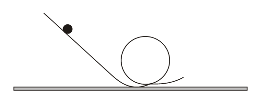 A (UDESC 2011) Considere o “looping” mostrado na Figura, constituído por um trilho inclinado seguido de um círculo. Quando uma pequena esfera é abandonada no trecho inclinado do trilho, a partir de determinada altura, percorrerá toda a trajetória curva do trilho, sempre em contato com ele.