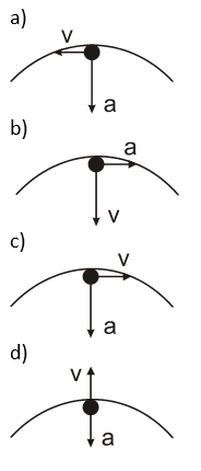 Sendo v a velocidade instantânea e a a aceleração centrípeta da esfera, o esquema que melhor representa estes dois vetores no ponto mais alto da trajetória no interior do círculo é: