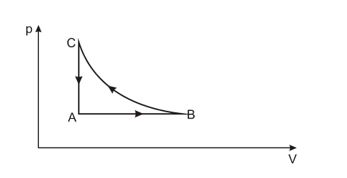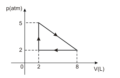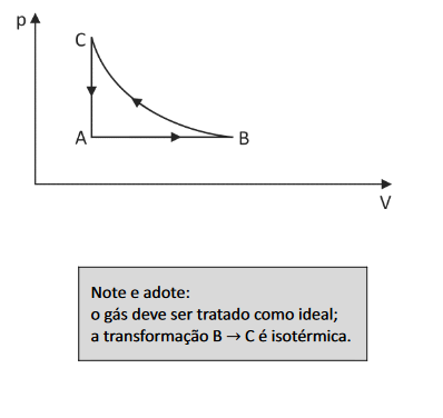 (PRIMEIRA LEI) E (FUVEST 2015) Certa quantidade de gás sofre três transformações sucessivas, A → B, B → C e C → A, conforme o diagrama p x V apresentado na figura abaixo.