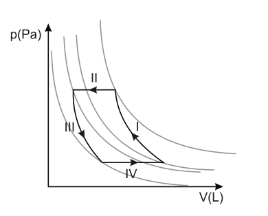 - d) Ao final de cada ciclo, o gás retorna à temperatura inicial.