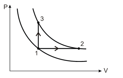 - No processo 1→3, o gás não realiza trabalho contra a vizinhança.