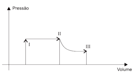 C (UFES 2011) A análise da figura, que representa sucessivas transformações realizadas por uma massa gasosa, permite afirmar que as transformações I, II e III são, respectivamente,