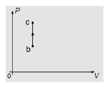 D (UFRN 2010) A transformação termodinâmica b → c, ilustrada no diagrama PV da figura a seguir, constitui um dos processos do ciclo Otto, utilizado em motores de combustão interna de automóveis a gasolina. No diagrama, P representa a pressão na câmara de combustão, e V o volume da câmara.