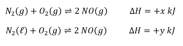 Com base nesses dados, um estudante calculou a variação de entalpia (∆H) de cada uma das reações e concluiu, corretamente, que, nas condições empregadas,