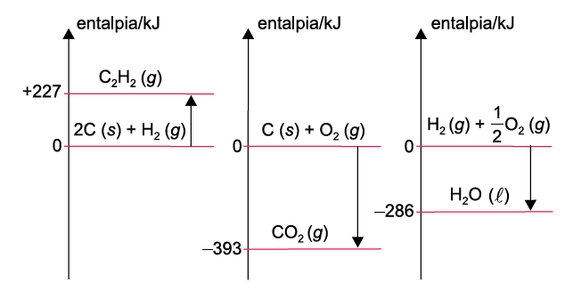 (CSA 2011 – BIB – U5a) Demonstre num diagrama de entalpias qual dos processos abaixo envolve maior quantidade de calor: