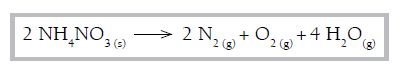 C (UERJ 2009) Explosivos, em geral, são formados por substâncias que, ao reagirem, liberam grande quantidade de energia. O nitrato de amônio, um explosivo muito empregado em atividades de mineração, se decompõe segundo a equação química: