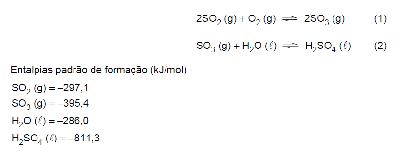 A partir dos dados fornecidos, a produção de 1 mol de H2SO4 (l) partindo do SO2 (g) apresenta ΔH igual a