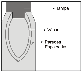 C (IFSC 2012) O frasco de Dewar é um recipiente construído com o propósito de conservar a temperatura das substâncias que ali forem colocadas, sejam elas quentes ou frias. O frasco consiste em um recipiente de paredes duplas espelhadas, com vácuo entre elas e de uma tampa feita de material isolante. A garrafa térmica que temos em casa é um frasco de Dewar. O objetivo da garrafa térmica é evitar ao máximo qualquer processo de transmissão de calor entre a substância e o meio externo.