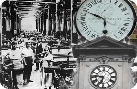 No século XVIII, a Revolução Industrial na Inglaterra deu uma nova importância às horas. Os operários agora tinham a hora de entrada e de saída nas fábricas. A desconfiança no relógio do patrão fez com que os operários adquirissem seu próprio relógio. Com isso, a indústria de relógios cresceu e estes se tornaram mais baratos na medida em que sua produção tornou-se seriada.