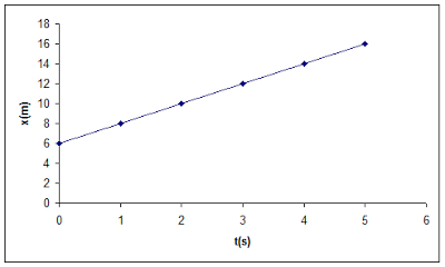 Gráfico espaço versus tempo para um movimento retilíneo uniforme descrito pela função horária do espaço x(t) = 6 + 2.t