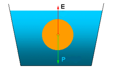 Quando E > P, o corpo sobe, diminuindo o volume submerso e, consequentemente, diminuindo o empuxo. Quando E = P, o corpo para de subir e flutua.