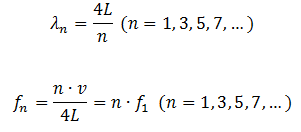 - O número de semifusos (λ/4) equivale ao número do harmônico. Não existem harmônicos pares.