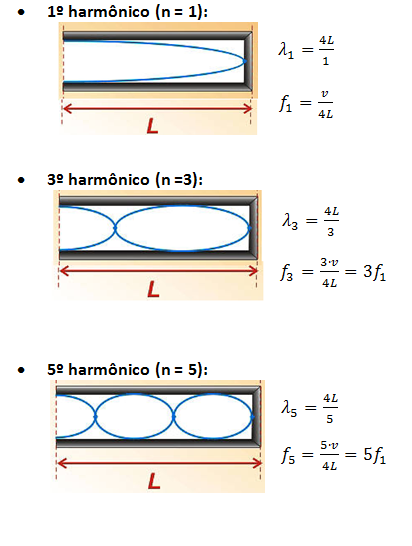 - A onda estacionária forma ventre na extremidade aberta e nó na extremidade fechada.