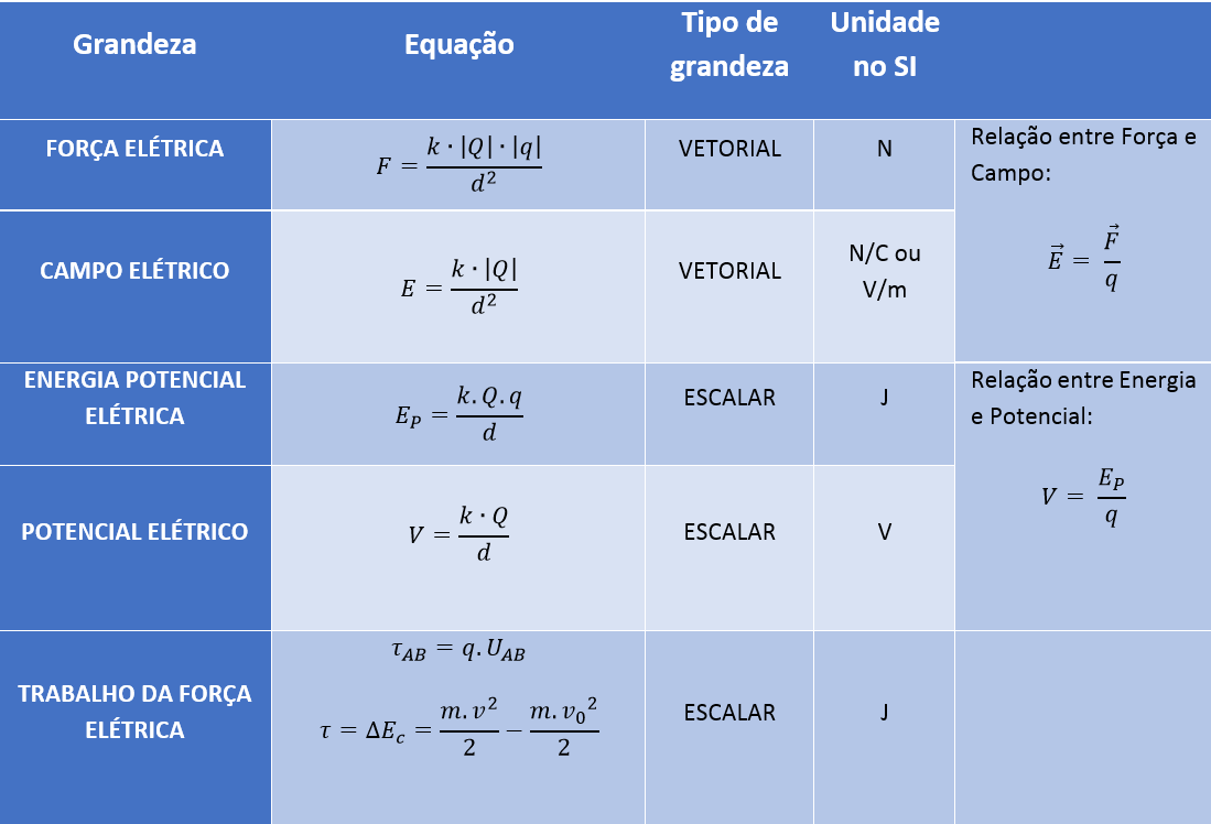 RESUMO DAS GRANDEZAS ELETROSTÁTICAS