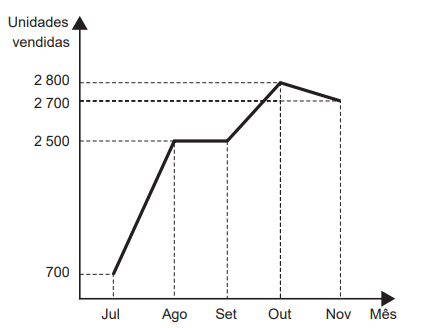 (GRÁFICOS E MÉDIAS) D (ENEM 2019) O gráfico a seguir mostra a evolução mensal das vendas de certo produto de julho a novembro de 2011.
