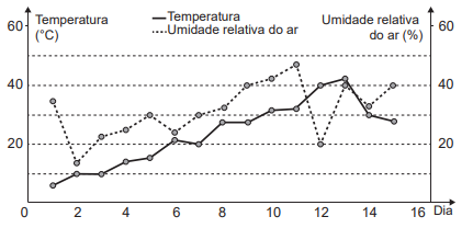 Um resumo da previsão do tempo nessa cidade, para um período de 15 dias, foi apresentado no gráfico.