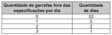 Diariamente, durante 60 dias, foram anotadas as quantidades de garrafas fora dessas especificações.