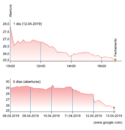- b) da cotação da abertura de 09.04.2019 até a abertura de 13.04.2019 houve queda de, aproximadamente, 12%.