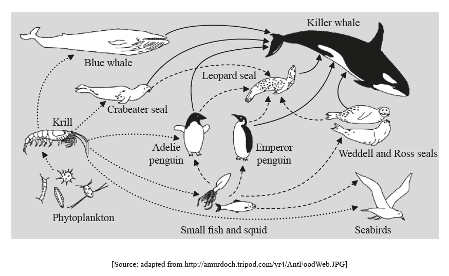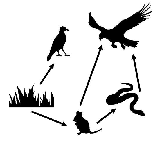 The diagram below shows a simplified food web.
