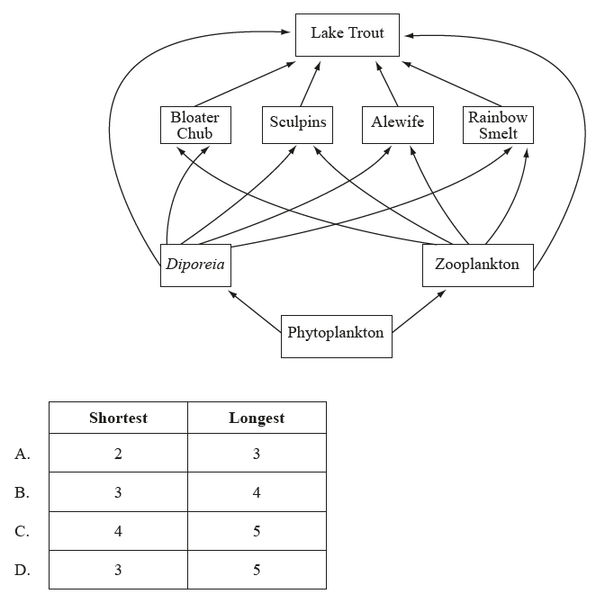 How many trophic levels are there in the shortest and longest food chains that end with Lake Trout?