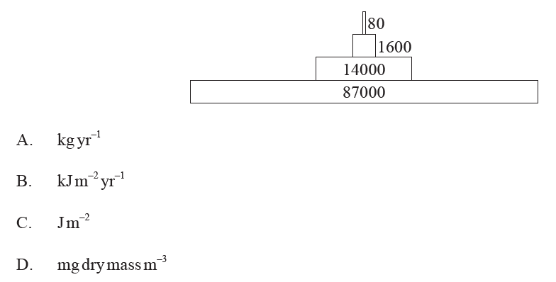 The diagram shows a pyramid of energy for a wetland environment. What units would be appropriate for the values shown?