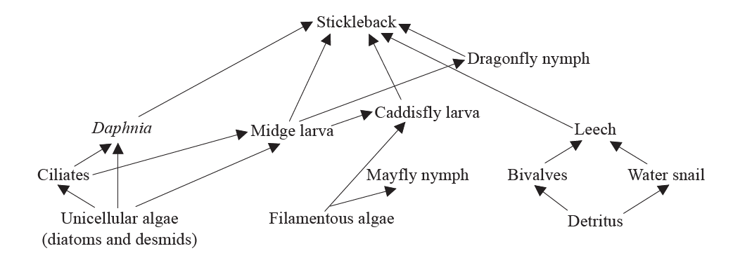 Questions 22 and 23 refer to the following diagram which is part of a food web for a freshwater habitat