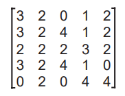 A (ENEM 2019) Um professor aplica, durante os cinco dias úteis de uma semana, testes com quatro questões de múltipla escolha a cinco alunos. Os resultados foram representados na matriz.